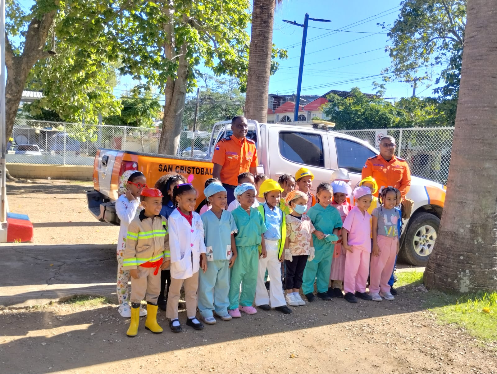 El propio día de la celebración, los estudiantes de la tanda matutina contaron con el acompañamiento del Cuerpo de Bomberos de San Cristóbal, mientras que los de la tanda vespertina recibieron la visita de la Defensa Civil. Ambos equipos dialogaron con los niños sobre la importancia de sus funciones y ofrecieron charlas de cuidado personal adaptadas a sus edades, abordando temas como el uso responsable del fuego y nociones básicas de primeros auxilios.